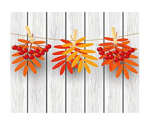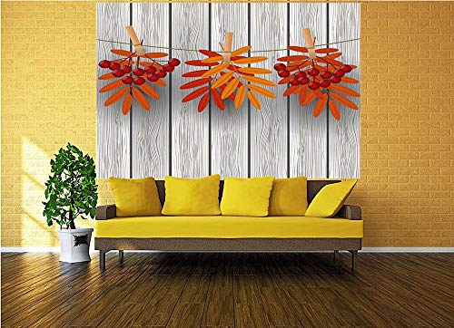 Specification: 100×100 inches Wall Mural,Vibrant Autumn Leaves and Red Fruits Hanged with Clothes Pin on a String Print Decorative Peel and Stick Self-Adhesive Wallpaper Removable Large Wall Sticker Wall Decor for H