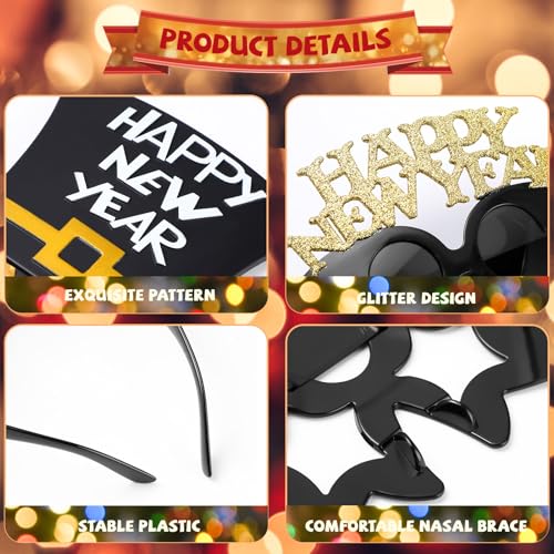 Reliable Material: our Happy New Year photo props glasses are made of sturdy quality plastic, will not bend or deform, durable and reliable, not easy to fade or break, lightweight and portable, will not add any burden to the nose, you can carry it with you and can use it for a long time