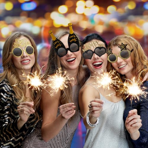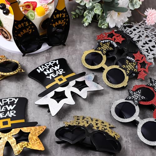 Specification: Copkim 12 Pairs Happy New Year Glasses New Year’s Eve Sunglasses Novelty 2026 Plastic Glasses Photo Props(Stylish Styles)
