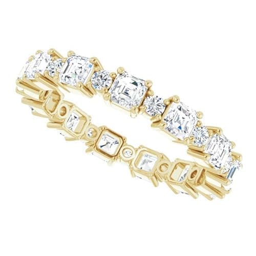 2 CT Moissanite Engagement Ring 10k 14k 18k Gold & 925 Sterling Silver Eternity Moissanite Ring Christmas Gift For Women ►The stone was originally cut and polished by our skilled craftsmen, the stones in jewelry are 100% handcrafted. Moissanite is a great alternative to mine diamonds. ► Moissanite Details → Stone Shape: Asscher, Round Moissanite → Stone Weight: 2 Carat → All Stone Color: Colorless → All Stone Clarity: VVS → Mohs Scale : Moissanite 9.25 → Refractive Index : 2.65 (Moissanite) ► Metal details → Metal Type: 925 Silver / Solid Gold → Metal Purity: 925 Silver / 10k/14k/18k Solid Gold → Metal Tone: White/Yellow/Rose Gold → Metal Stamp: 925/10K/14K/18K