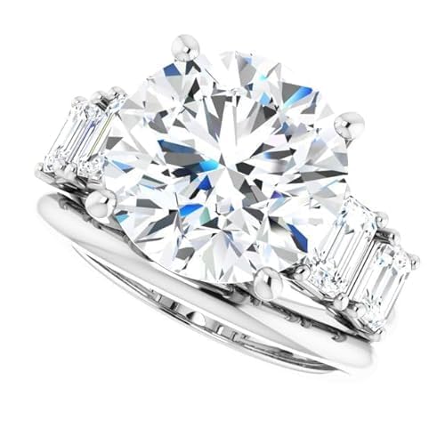 6.5 CT Round Moissanite Engagement Ring Vvs1 10k 14k 18k Gold & 925 Sterling Silver Solitaire 5 Stone Moissanite Wedding Ring Christmas Gift For Women ►The stone was originally cut and polished by our skilled craftsmen, the stones in jewelry are 100% handcrafted. Moissanite is a great alternative to mine diamonds. ► Moissanite Details → Main Stone Shape: Round Moissanite → Side Stone Shape: Emerald Cut Moissanite → Main Stone Weight: 6.5 Carat → All Stone Color: Colorless → All Stone Clarity: VVS → Mohs Scale : Moissanite 9.25 → Refractive Index : 2.65 (Moissanite) ► Metal details → Metal Type: 925 Silver / Solid Gold → Metal Purity: 925 Silver / 10k/14k/18k Solid Gold → Metal Tone: White/Yellow/Rose Gold → Metal Stamp: 925/10K/14K/18K