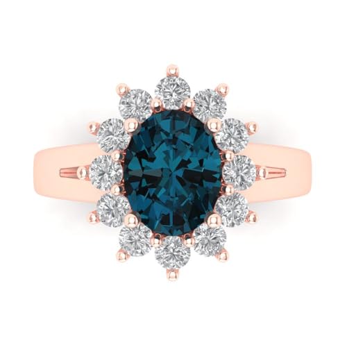 Specification: Clara Pucci 2.36ct Oval Cut Solitaire accent Halo Natural London Blue gemstone Designer Anniversary Bridal Engagement Ring 14k Rose Gold