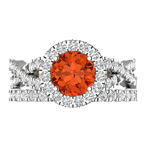 Specification: Clara Pucci 2.37ct Round Cut Halo Split Shank Solitaire with Accent Red Zircon Statement Bridal Wedding Ring Band Set 14k White Gold
