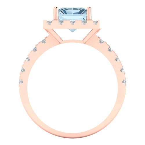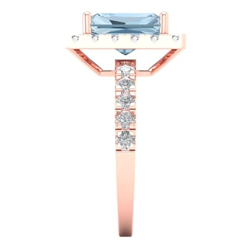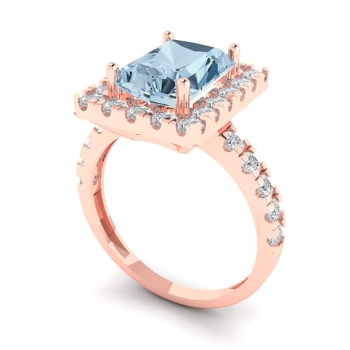 Specification: Clara Pucci 3.87ct Emerald Cut Solitaire with Accent Halo Genuine Natural Light Sea Blue Aquamarine designer Modern Ring 14k Rose Gold