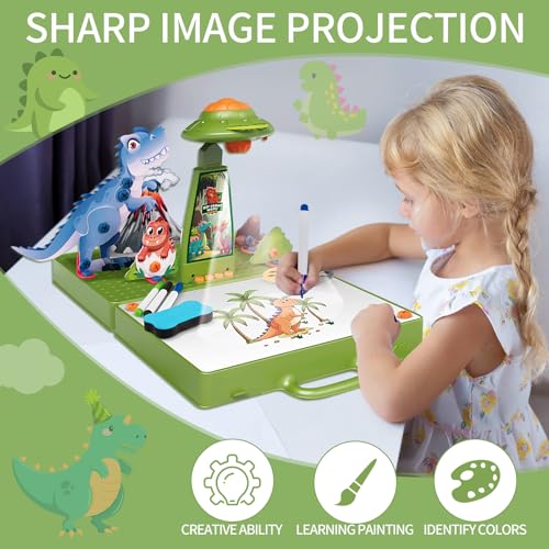 Drawing Projector for Kids, Tracing Projector for Drawing Early Learning Educational Toy Art Supplies for Kids 6-8, Dinosaur Toys for Kids Smart Projection Drawing Board Gift for Boys Girls (Dinosaur)