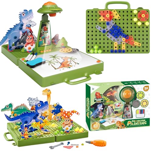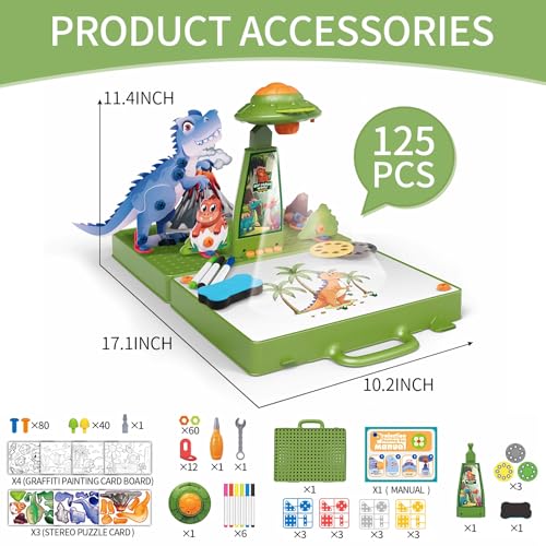 🎊【All in One Educational Toy Set】This kids toy is a multifunctional early learning educational toy set that combines design and drill toy with kids art projector. It is not only a good tool for children to learn drawing, but also allows them to use toy wrenches and screwdrivers to assemble mosaic blocks onto puzzle boards, construct 2D and 3D models. This kids drawing table combines play with learning, can enhance children’s interest in learning, and cultivate their creativity and imagination.