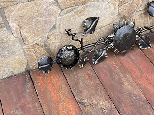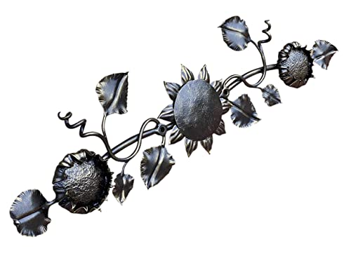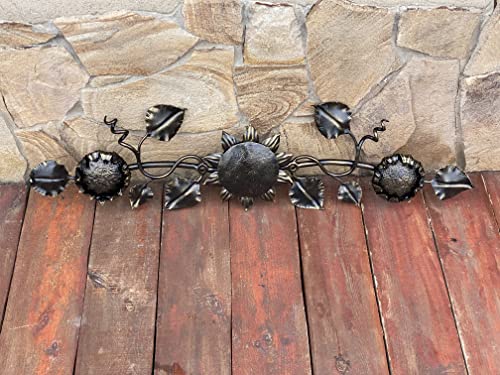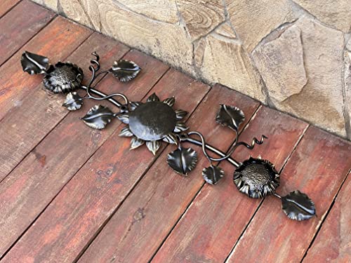 Are you looking for an unusual floral wall decor? Here is a floral wall decor with sunflowers which gives much more beauty to your house. It is done in the technique of the artistic forging. Size length: 100 cm (39.39″) Colour: black covered with gold patina. Colors may vary slightly from screen to screen.