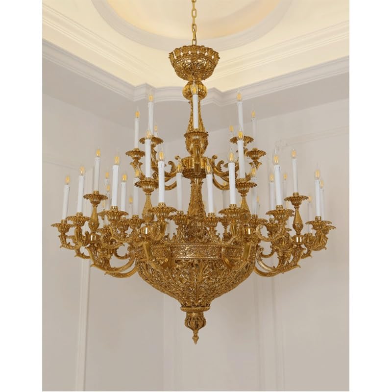 Specification: Luxury Brass Chandelier Gold 48-Light Oversize Candle Pendant High Ceiling Light Fixture E14 Base Antique Hanging Lamp Decoration Lighting for Hallway Entry Dinning Living Room Bedroom
