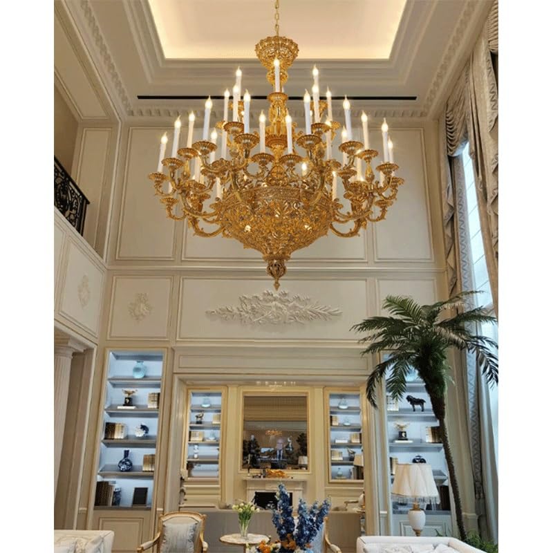 Luxury Brass Chandelier Gold 48-Light Oversize Candle Pendant High Ceiling Light Fixture E14 Base Antique Hanging Lamp Decoration Lighting for Hallway Entry Dinning Living Room Bedroom