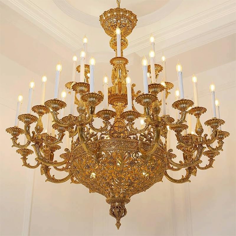 Craftsmanship: Handmade with meticulous attention to detail, this ceiling light fixture showcases exquisite carving and craftsmanship. The gold brass finish not only adds durability but also enhances the overall aesthetic appeal of the chandelier