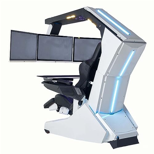 Specification: Luxury Video Gaming Chair, High-Back Swivel Chair, Computer Table and Chair, Tilt Lock + Lumbar Support + Adjustable Backrest, for 3 Screens Ceiling RGB