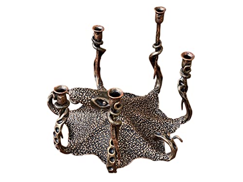 OCTOPUS CANDLE HOLDER Here is a hand forged octopus candle holder on 5 candles. It looks very decoratively. It is done in the technique of the artistic forging. Sizes: height – 25 cm (9.85″) width – 35 cm (13.78″) Colour: black covered with some copper and some bronze patina, lacquered. Add charm to your house with one of these cute crafts! I can send it to any country. A nice octopus theme decor for any octopus theme event (wedding, birthday, party ….). It will be a key decor for any octopus theme event. CUSTOMIZATION Custom orders are welcome (different colour, size, content). A customization price is not included into the listing price. Please ask for the price of your custom order. I keep usually 1 piece always available. If on the moment of your order it will not be available, please allow 15-20 days for its making.