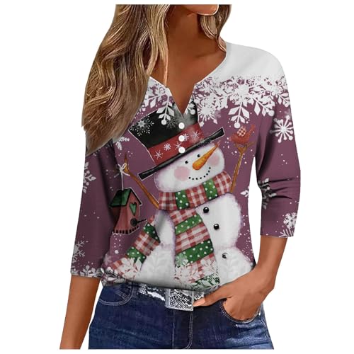 Women’s Christmas Shirts Christmas Reindeer Print Xmas Tee Top Stylish -Neck 3/4 Sleeve Pullover Outerwear